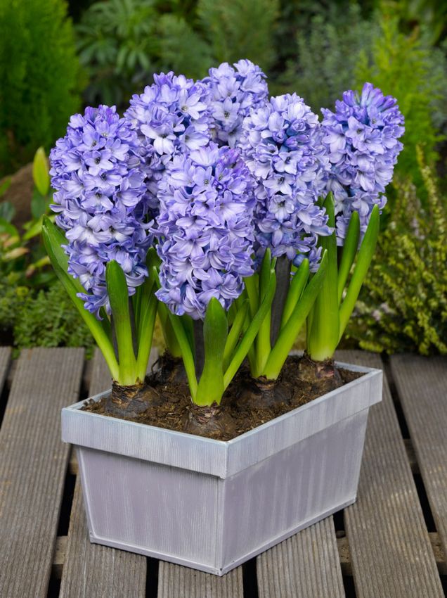 Eine der am meisten duftenden Hyazinthen! Eine Variante, die durch ihre hellblauen Blüten, die der Farbe eines Blauregen entsprechen, sofort ins Auge sticht. Sie bilden einen schönen Kontrast zum dunklen Stiel und eignen sich auch gut für Töpfe.