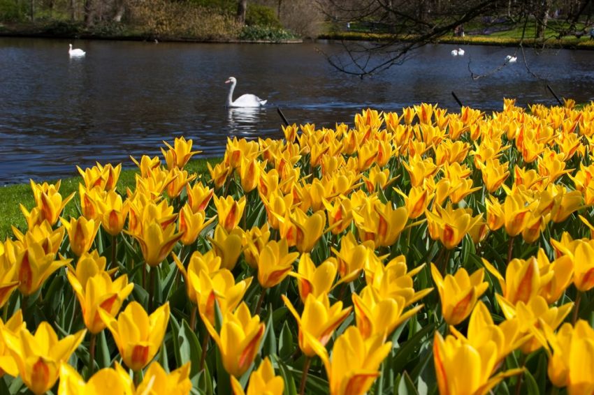 Süsse, niedrigwüchsige Kaufmanniana-Tulpen in Gelb und Rot, die sich sehr gut für Blumenbeet- und Randpflanzung eignen. 1955 nach dem berühmten Komponisten benannt! Tulpen aus der Kaufmanniana-Gruppe sind früh und aufgrund des breiten und gefleckten Blattes sehr dekorativ.
