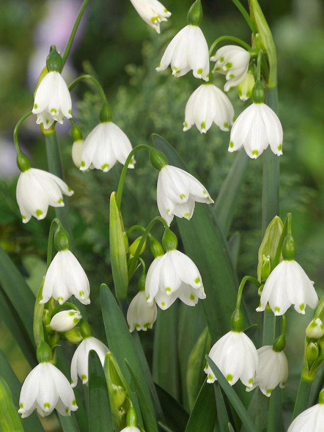 Die bekannte Sommer-Knotenblume ist ein echter Liebhaber feuchthaltender Böden. Kann an Grabenseiten oder als Teichpflanze, aber auch in einem Beet an einem humusreichen Standort gepflanzt werden. Blüht mit mehreren weissen Blüten mit grünen Spitzen ab Mai.